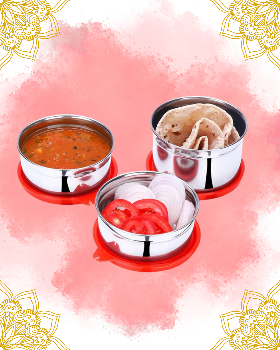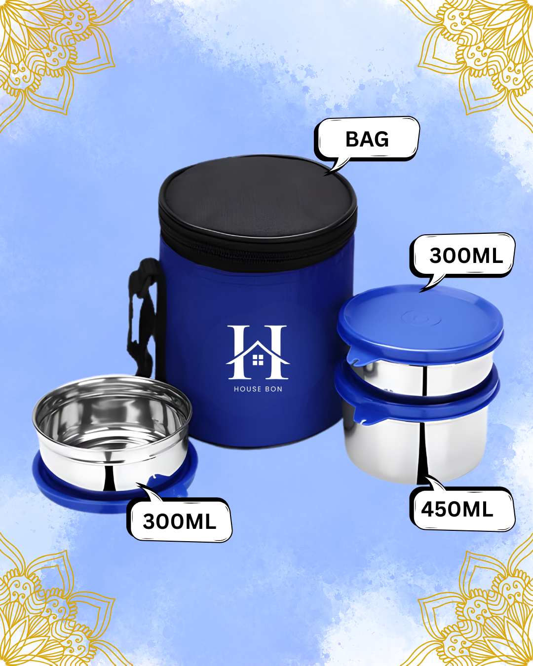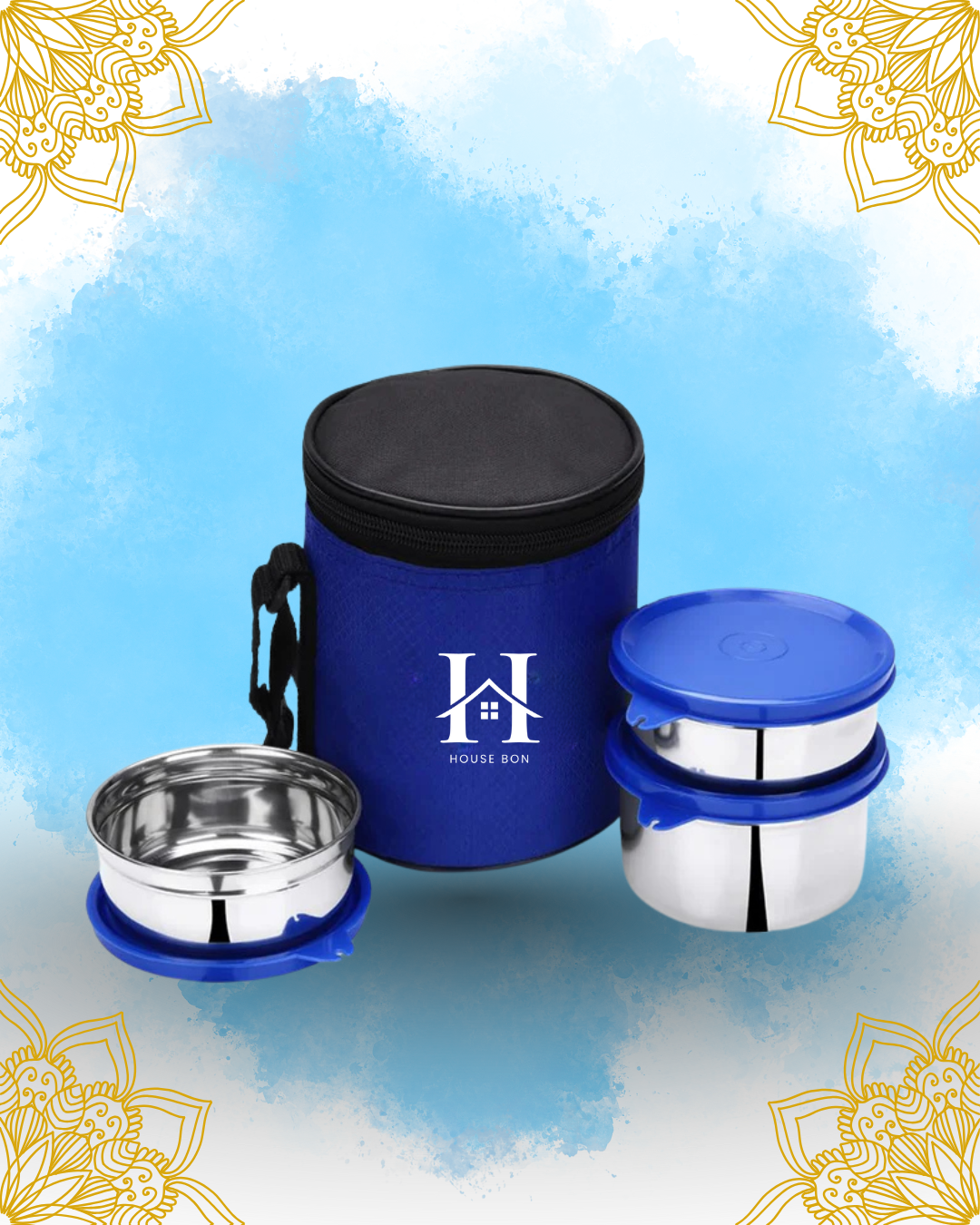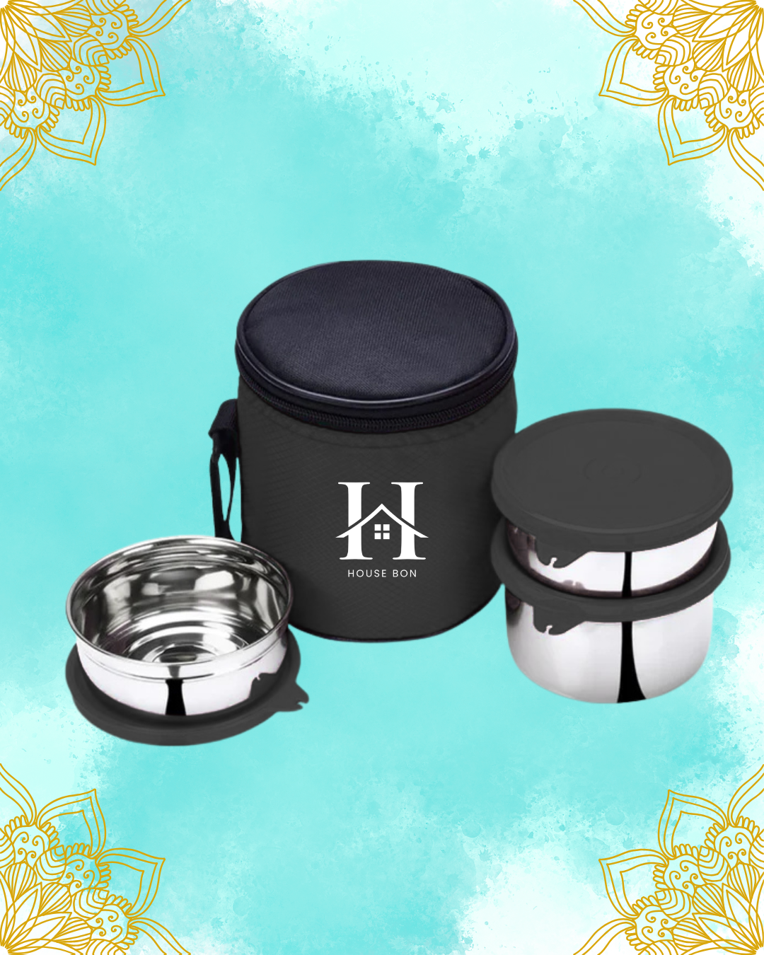 Enjoy fresh, spill-free meals anywhere with the House Bon Stainless Steel Lunch Box Set. It includes 3 durable containers with airtight lids and a handy carry bag — ideal for office, school, or travel.