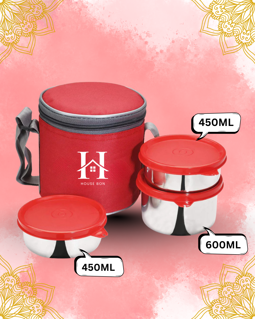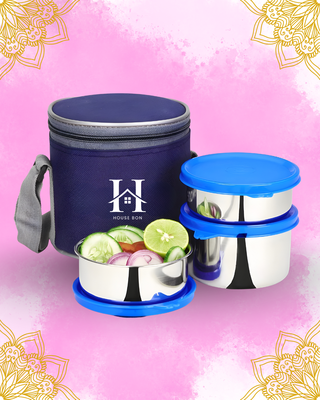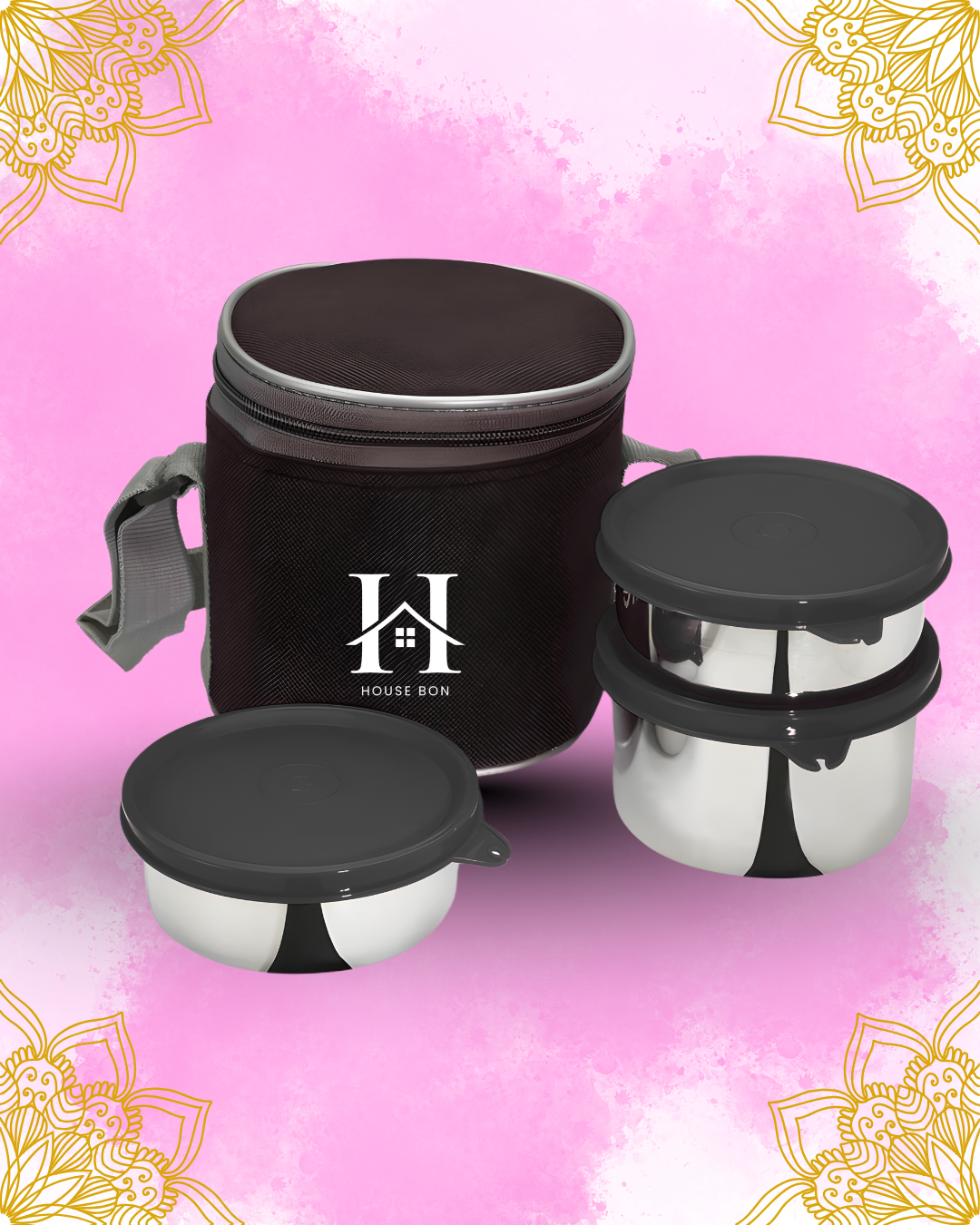 Make every meal fresh, secure, and stylish with the House Bon 3-Piece Stainless Steel Lunch Box Set.