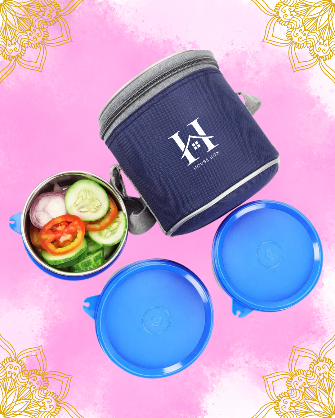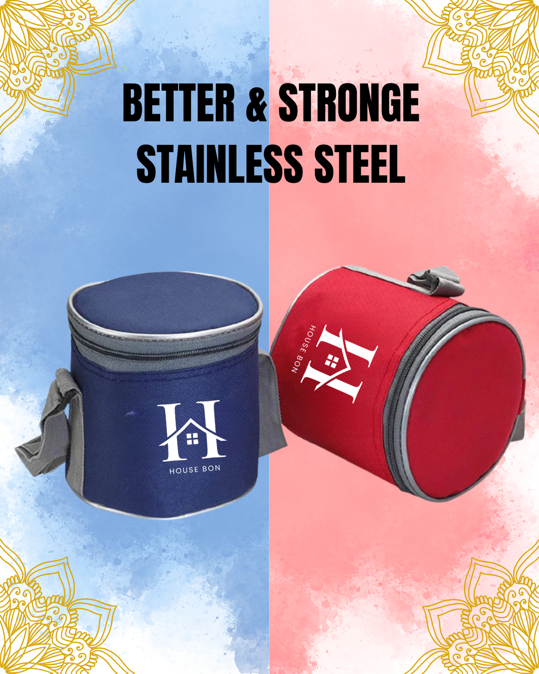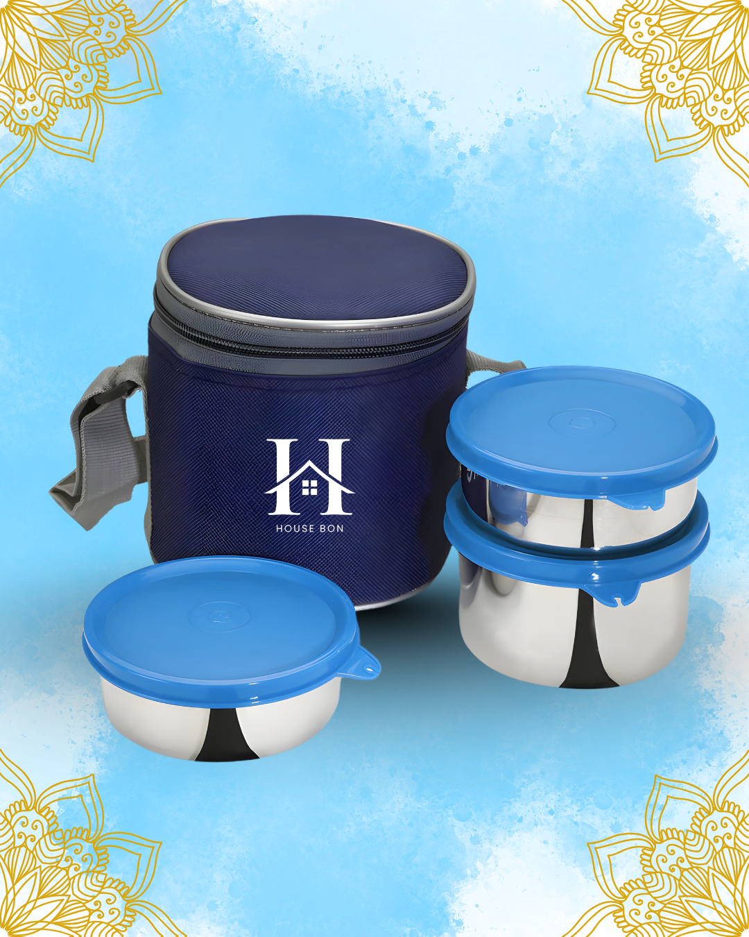 Make every meal fresh, secure, and stylish with the House Bon 3-Piece Stainless Steel Lunch Box Set.
