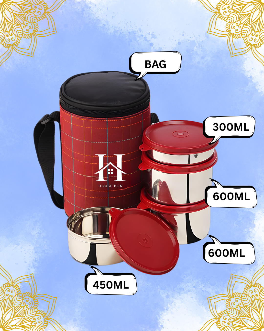 🥗 House Bon Stainless Steel Lunch Box Set – 4 Containers
