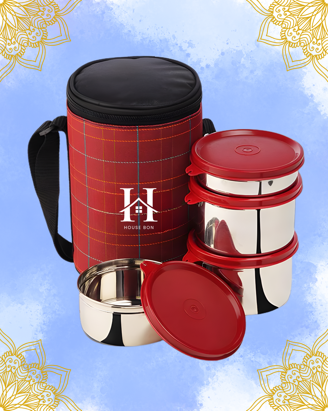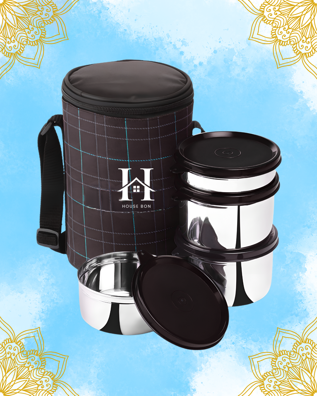 Enjoy freshness, durability, and style with the House Bon Stainless Steel Lunch Box SetÂ
