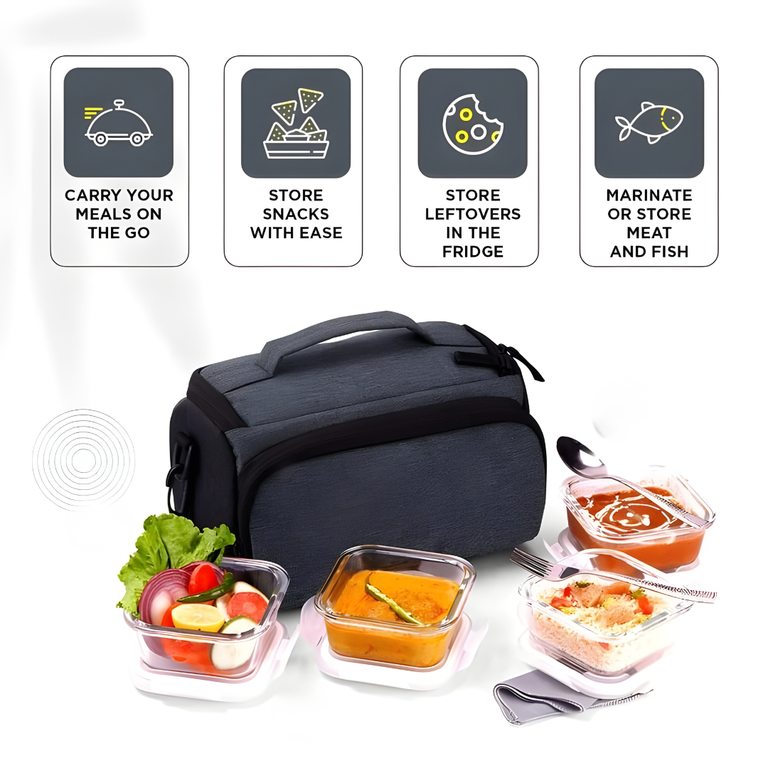Material: 100% Food-Grade Stainless Steel Containers, Premium Fabric Insulated Bag