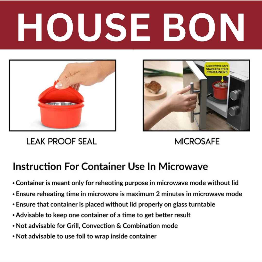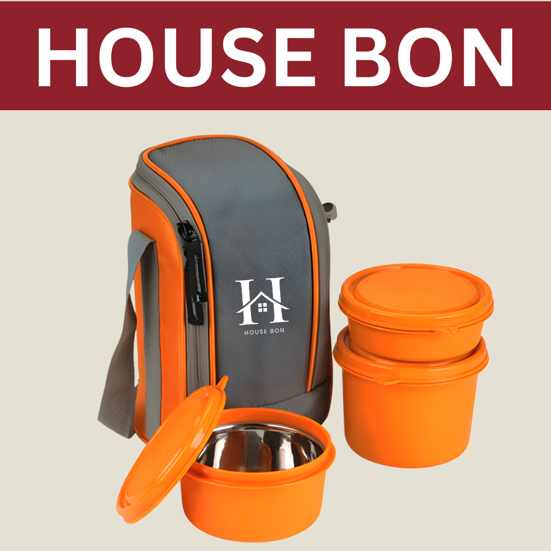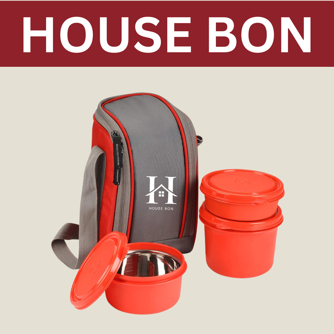 House Bon Boss Stainless Steel Lunch Box – 3 Containers (290ml + 450ml + 600ml)