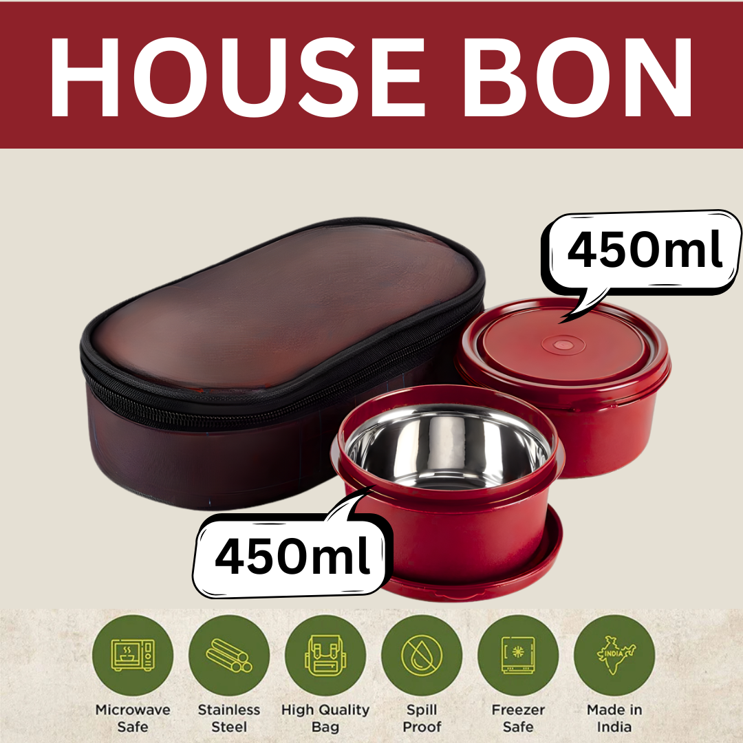 House Bon Stainless Steel Lunch Box – 2 Containers (2×450ml)
