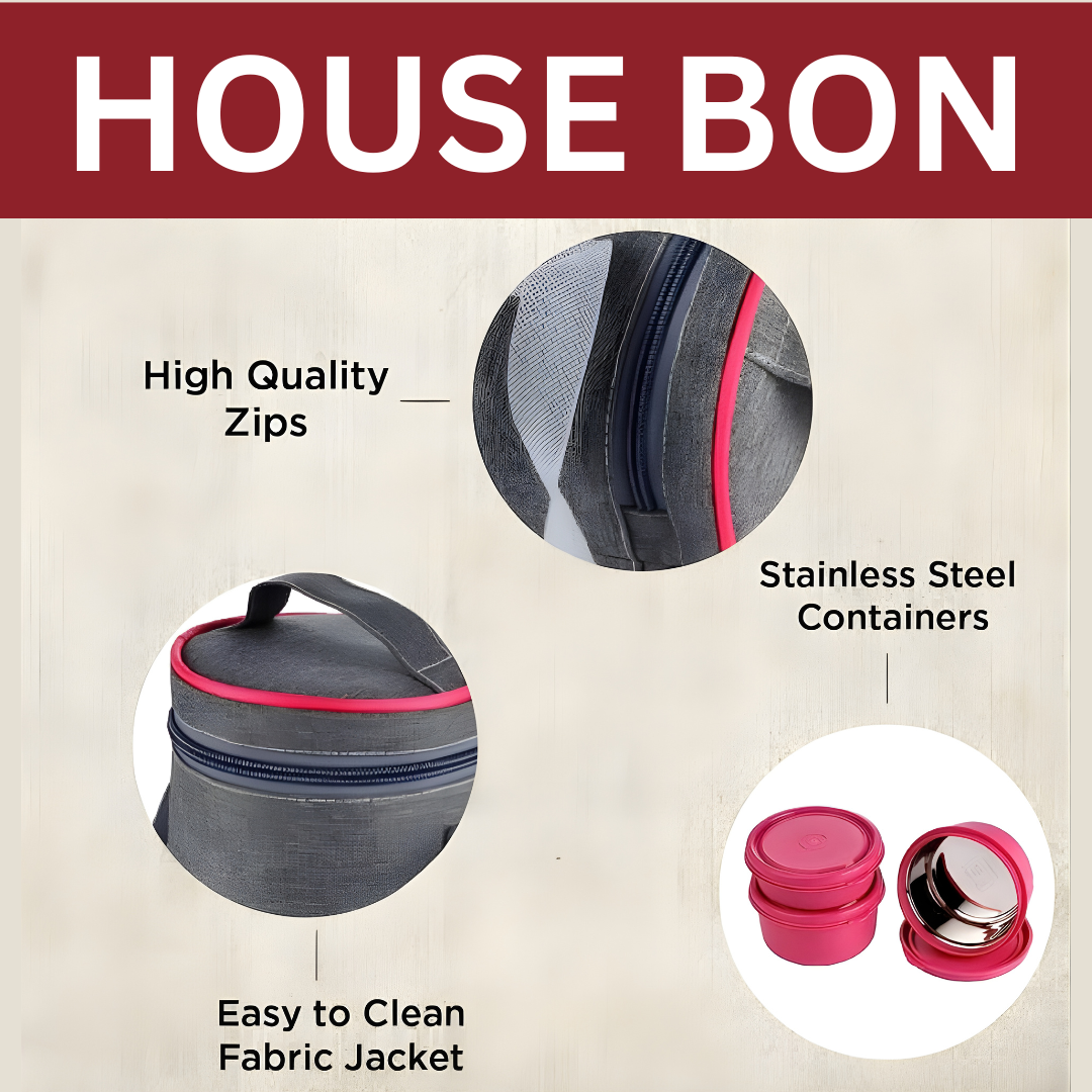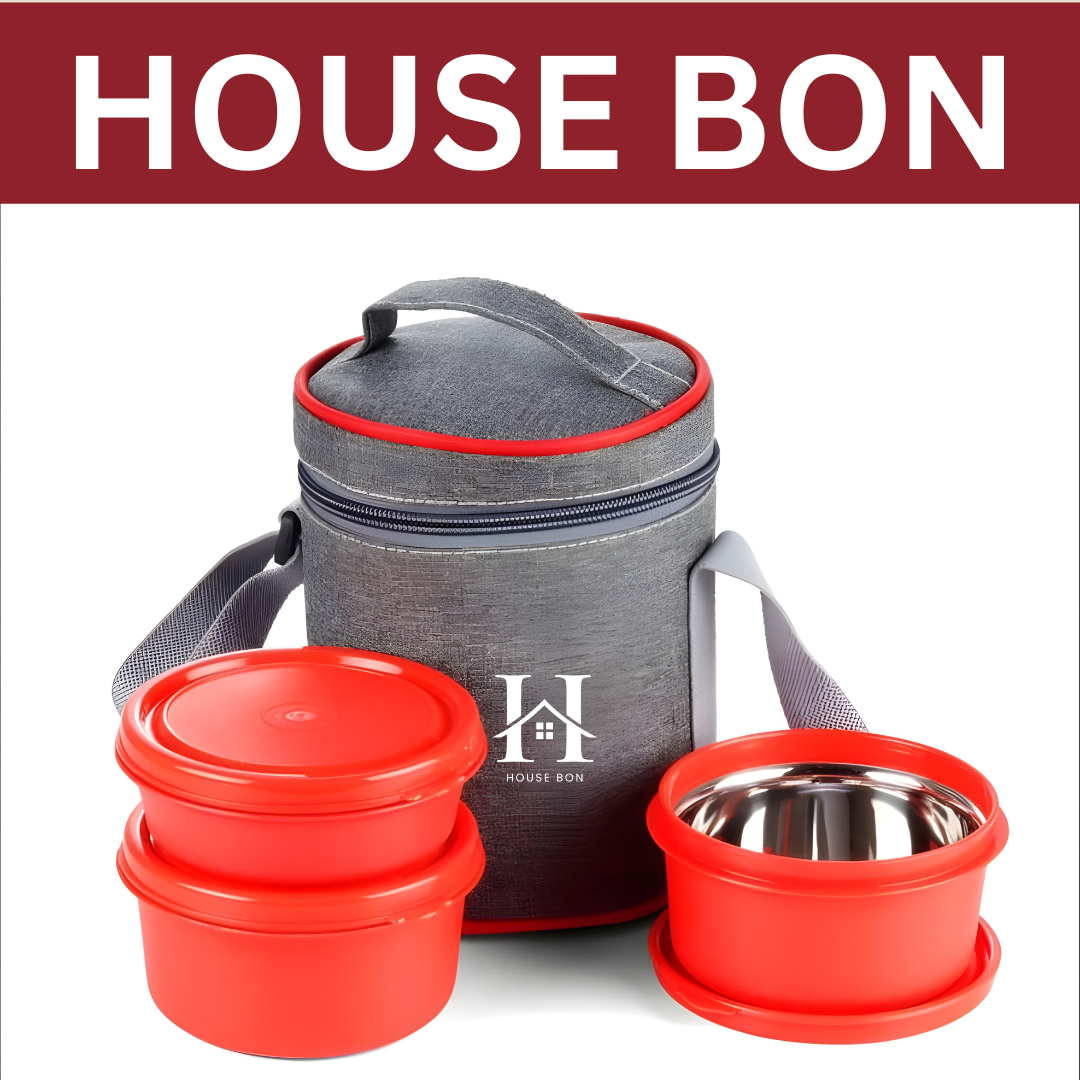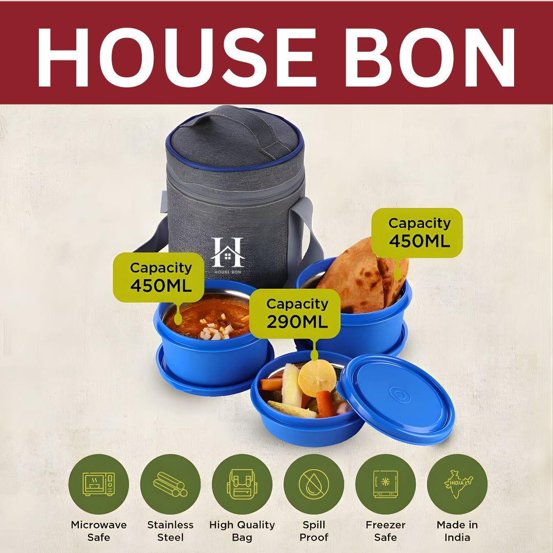 House Bon Stainless Steel Lunch Box – 3 Containers (2×450ml + 1×600ml)